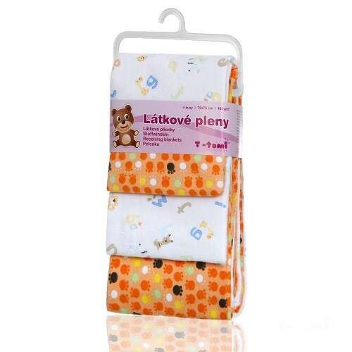 T-TOMI pamut pelenka, csúcsminőség, 4 db/csomag - Narancssárga mancsok 76 x 76 cm