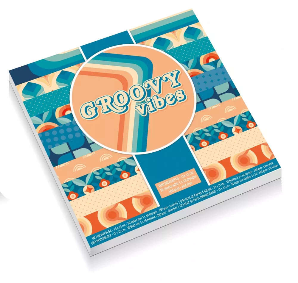 Mintás papírok, lapok, 15x15cm, 100 g, 10 minta, 30 lap/cs, tavaszi-nyári, Groovy Vibes
