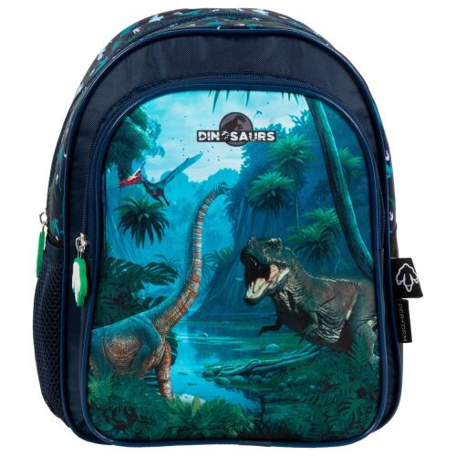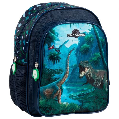 Dinoszaurusz hátizsák, 2 rekeszes, 29x23x14cm, DN19, kék-zöld