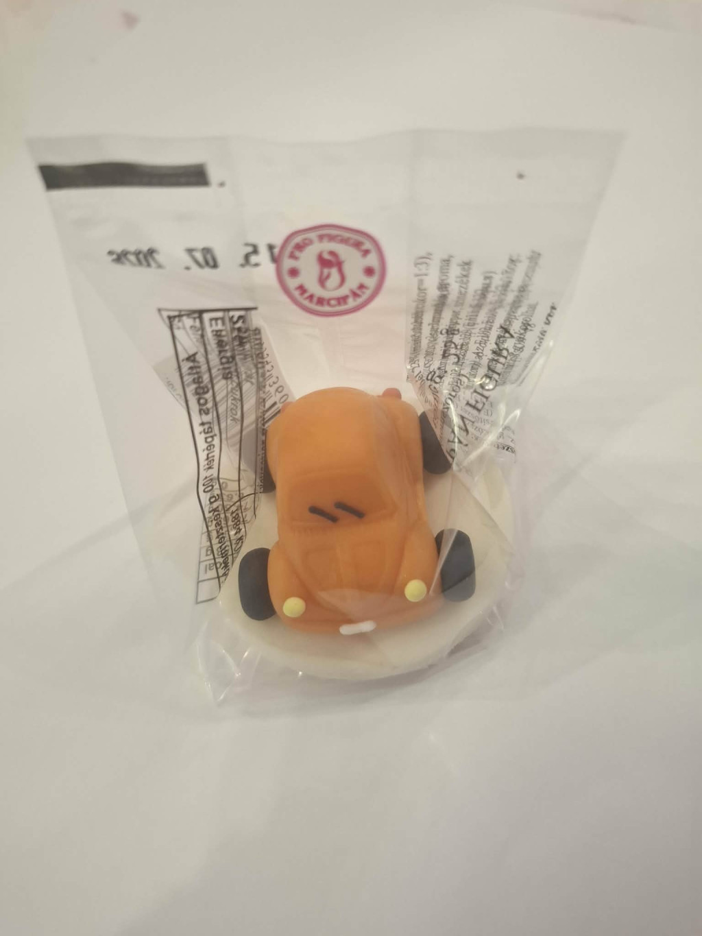 Narancssárga autó kis kézműves marcipán figura, 25g