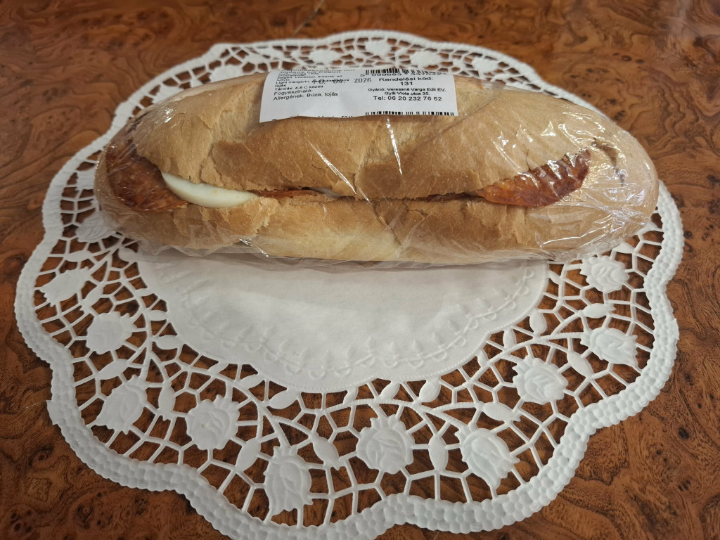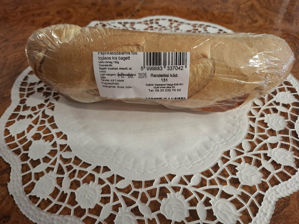 Paprikásszalámis-főtt tojásos bagett, 1 db