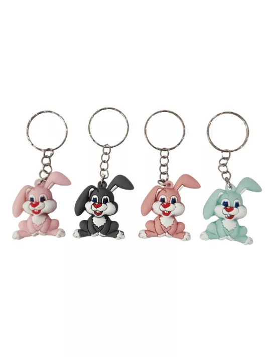 Nyuszis kulcstartó (ülő nyuszik), műanyag, 3x3,5cm, többféle, 1 db